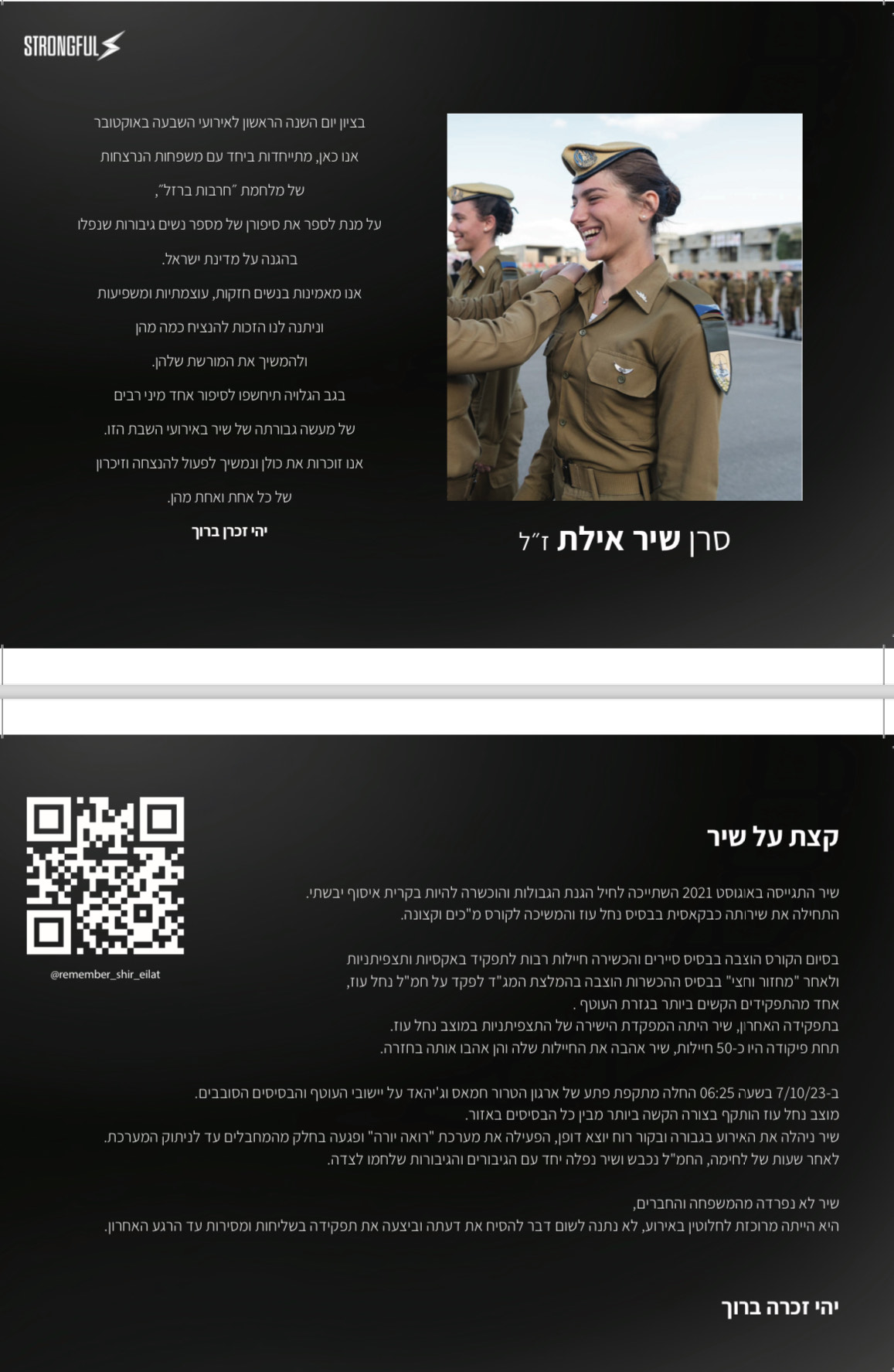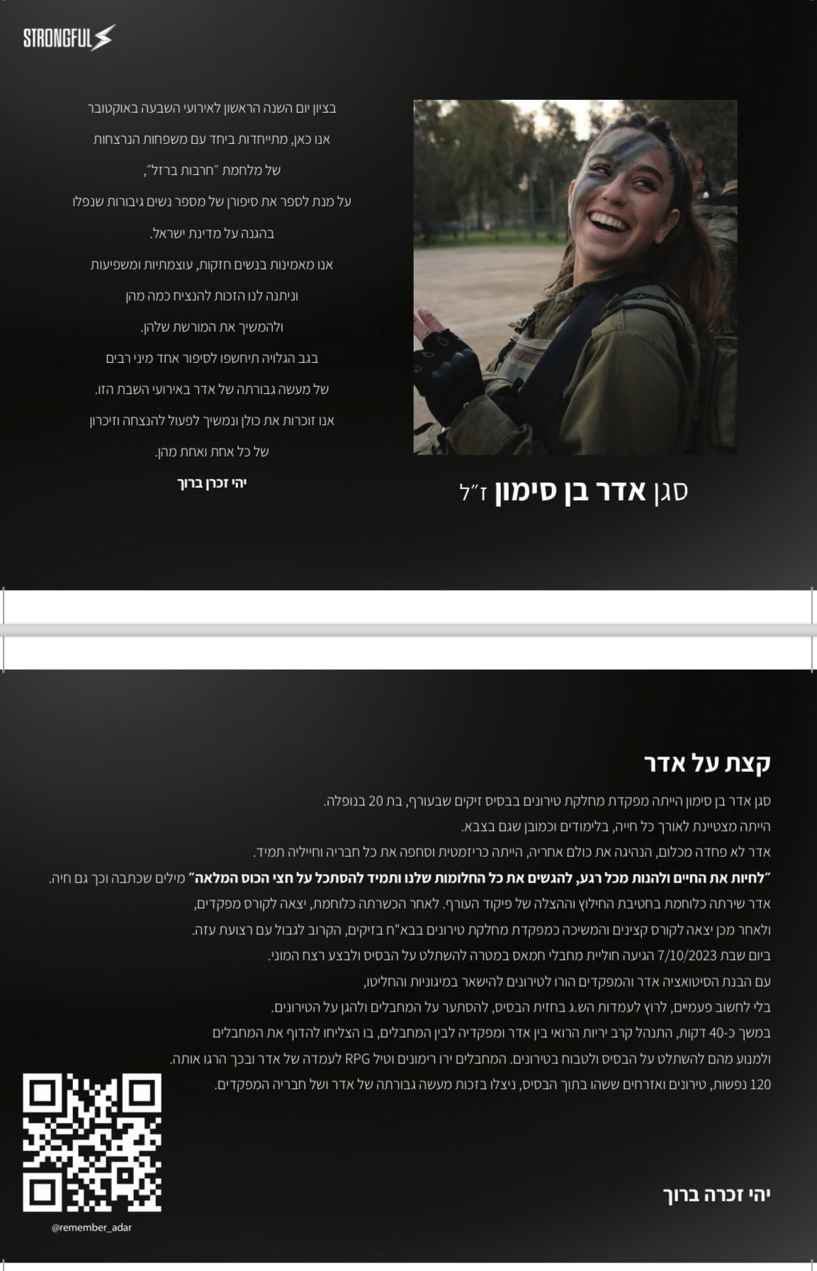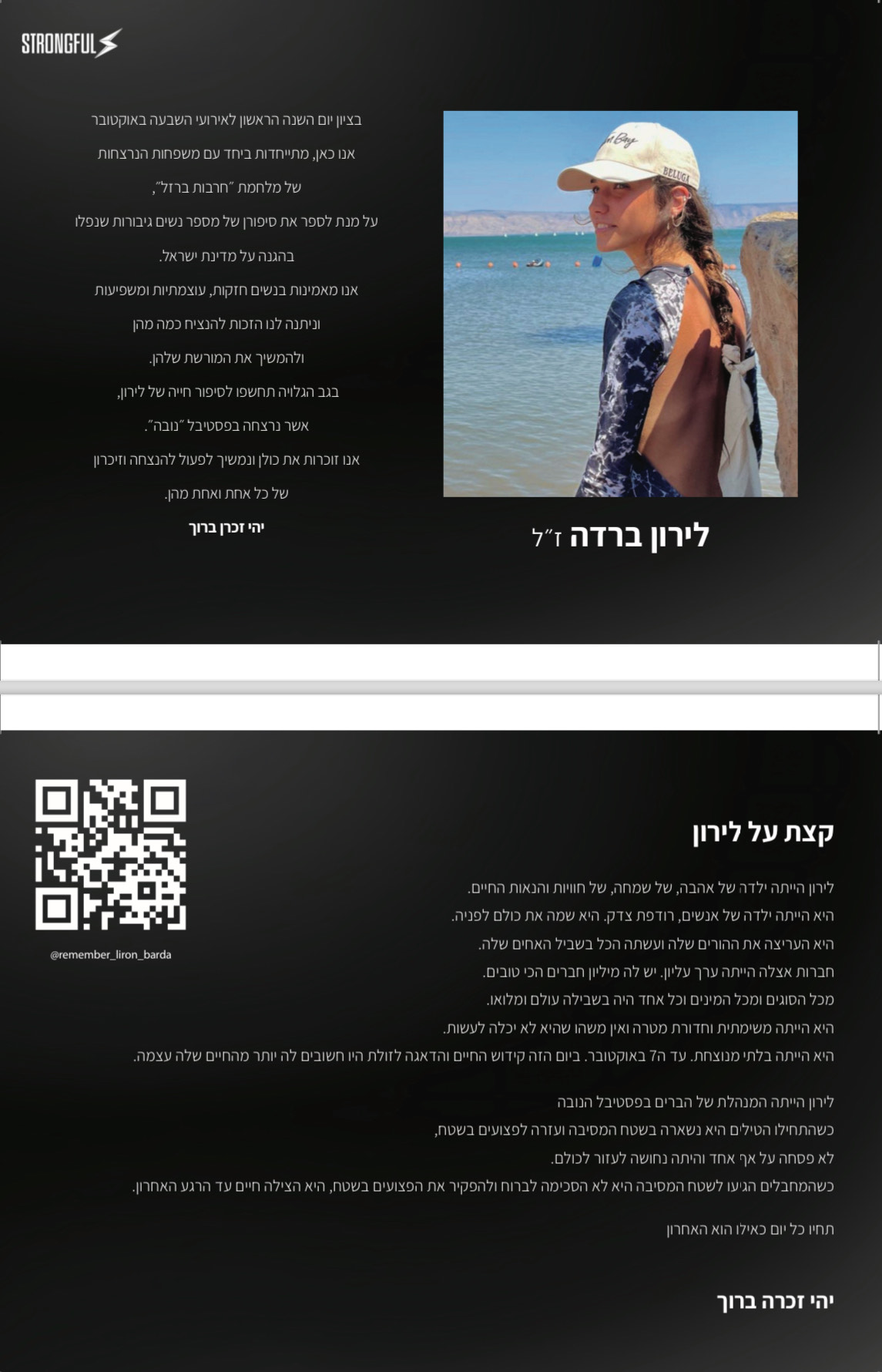 סטרונגפול, מותג הספורט הידוע בבגדי האימון שלו, נוקט בצעד מרגש באוקטובר זה. לזכר קורבנות ה-7/10. חמש גלויות ייחודיות המספרות את סיפוריהן של חמש נשים יוצאות דופן שאיבדו את חייהן באופן טרגי.