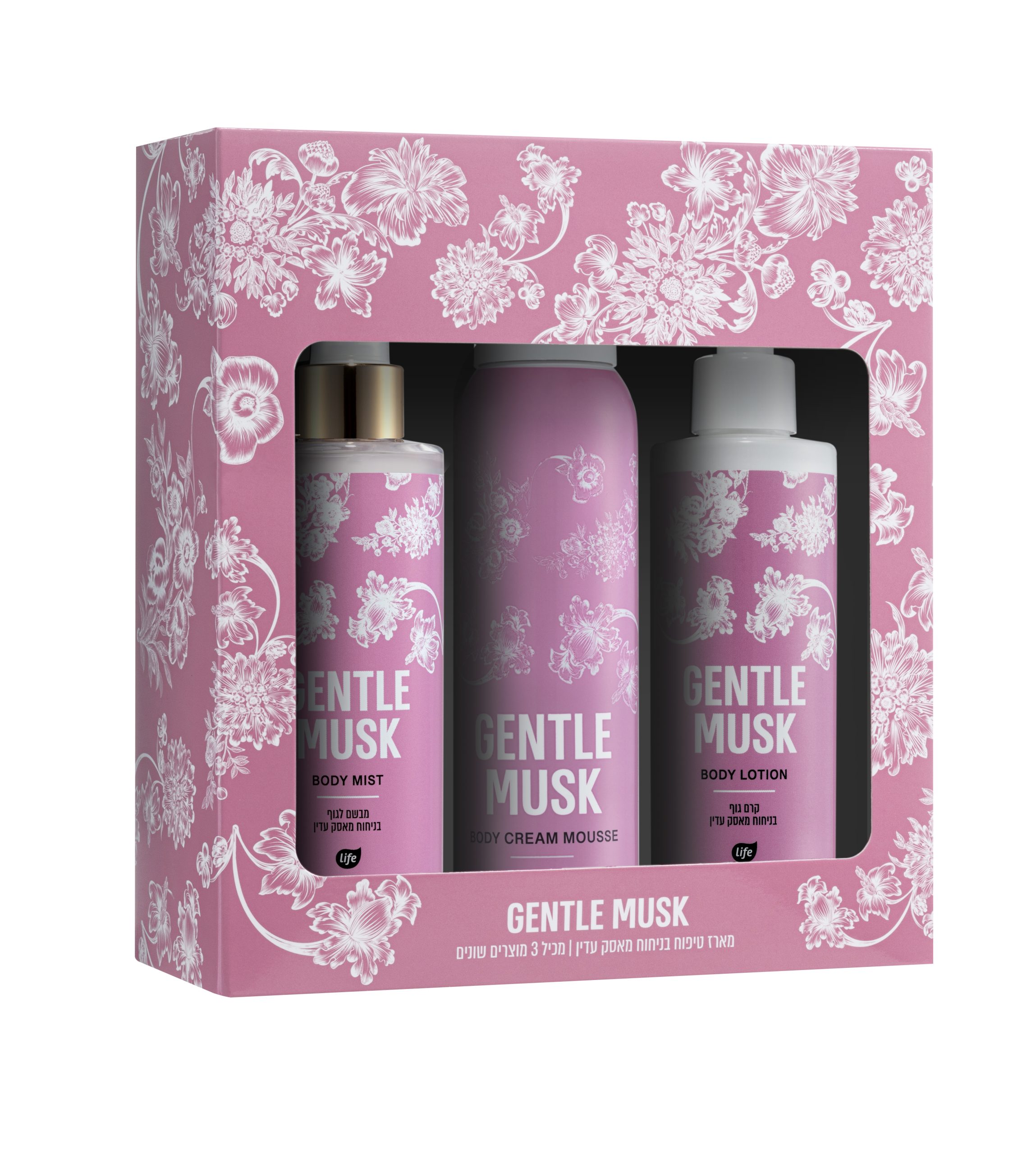 מארז טיפוח במהדורה מיוחדת בניחוח מאסק עדין הכולל שלושה מוצרים : קרם גוף מבושם ומטפח המסייע בגמישות ורכות לעור, מוס לחות לגוף במרקם אוורירי ומלטף המעניק לעור לחות והגנה ומבשם גוף לתחושת פינוק אמיתית