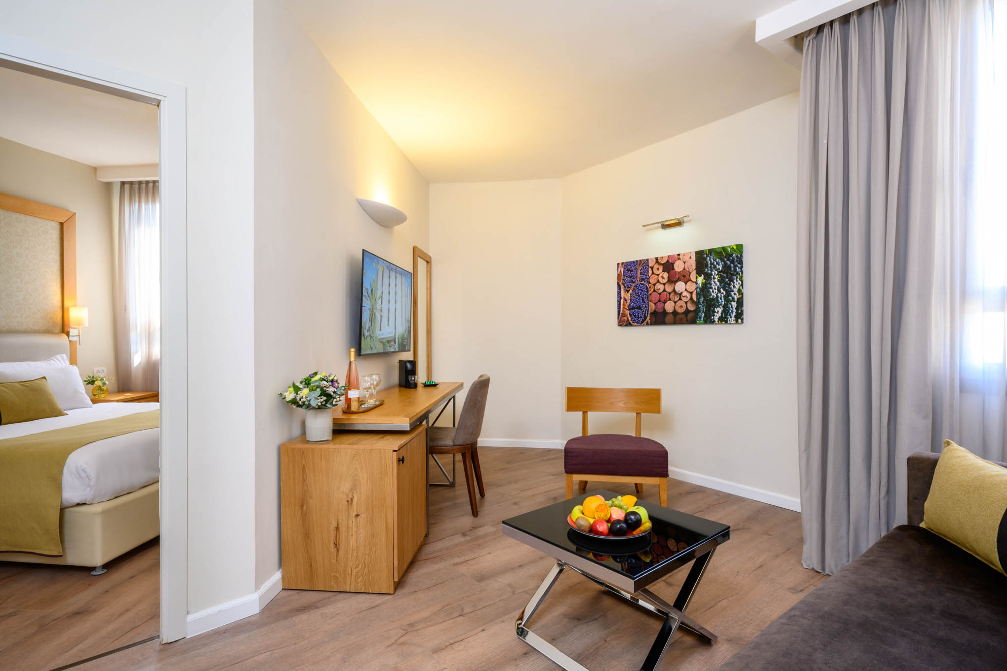 חדרים מרווחים ונעימים, בעיצוב טבעי ורך, עם השראה מהאדמה והכרמים.