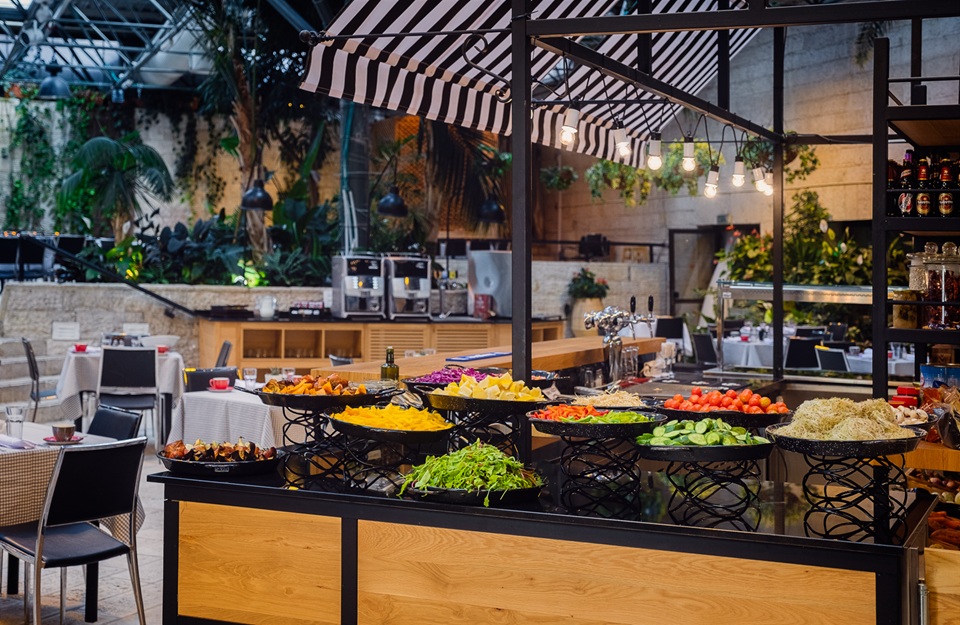 ארוחת בוקר ירושלמית אמיתית במסעדת "הפטיו" – פטיו פתוח ששוטף באור טבעי ושפע טעמים.