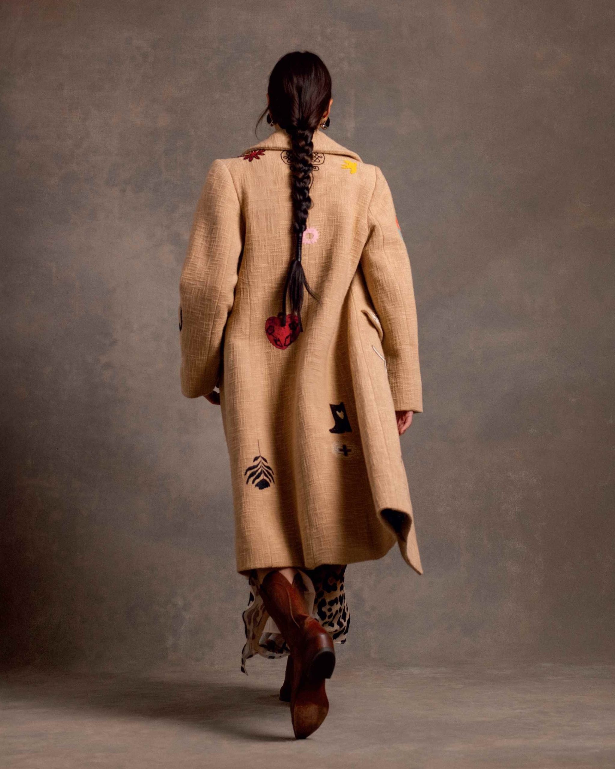 זהו בוהו במובן האמיתי: רומנטיקה של טקסטיל, שכבות אינטליגנטיות, וינטג’ פואטי עם טוויסט ניו־יורקי. את מזהה הדפסי יד, סווידים רכים, משי וקטיפה, רפלפות עדינות וז׳קטים בעלי נוכחות—כולם נשענים על אומנות חומרים ולא על טרנדים חולפים. (ראו גם ראיונות ועבודות מוקדמות שמדגישים את האיזון בין חופש־בוהו לחיתוך לביש.)