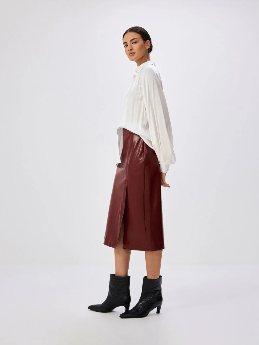 מכנסיים בצבע בורדו מציעים אלטרנטיבה רעננה לג'ינס כחול מסורתי. ז'קטים תואמים של נינה ריצ'י וחצאיות מלאות של מולי גודארד בשילוב סריגים גדולים מדגימים את הפוטנציאל היצירתי של צבע זה. למי שמהססות לגבי מכנסיים נועזים, חצאית בורדו היא פשרה אופנתית.