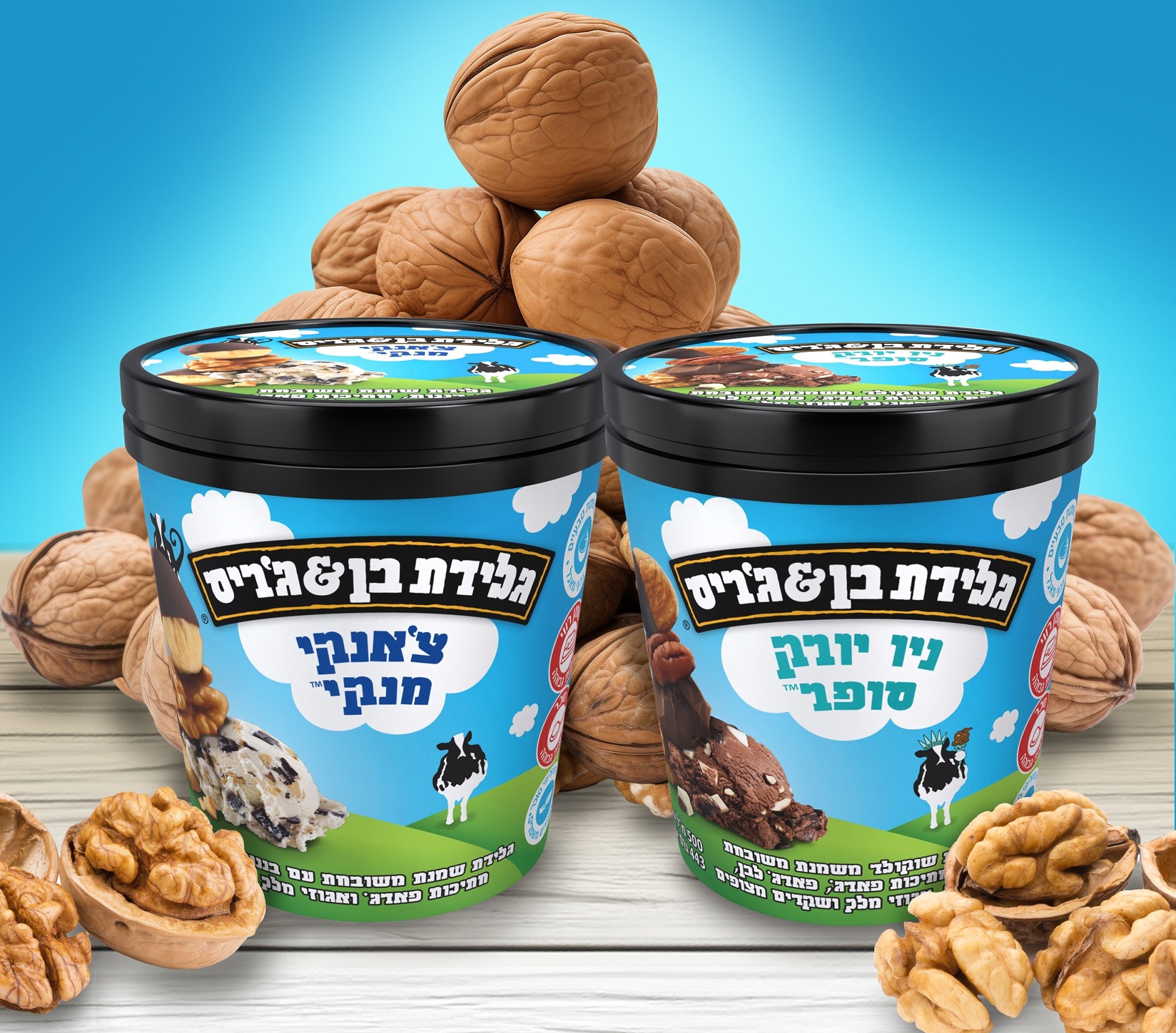 בעיתוי מושלם, בן & ג'ריס מציע לט"ו בשבט, חג האילנות, שני טעמי גלידה המשלבים אגוזי מלך, פקאנים, שקדים ובננות גלידת ניו יורק סופר וצ'אנקי מנקי.