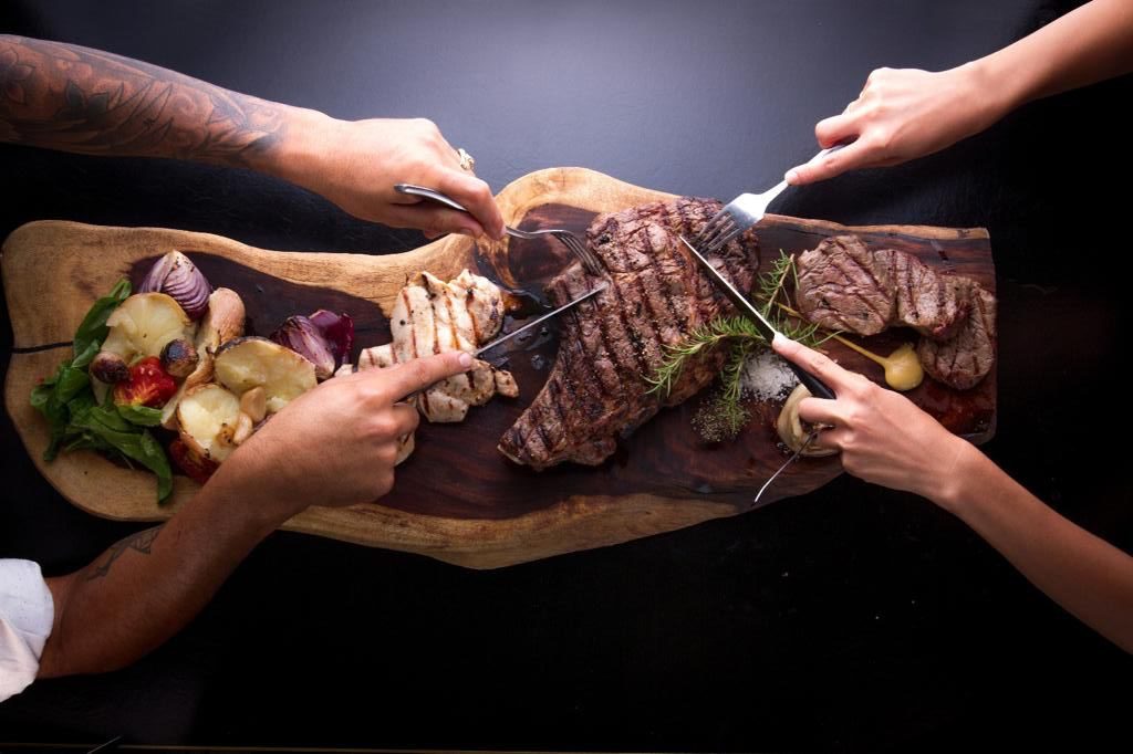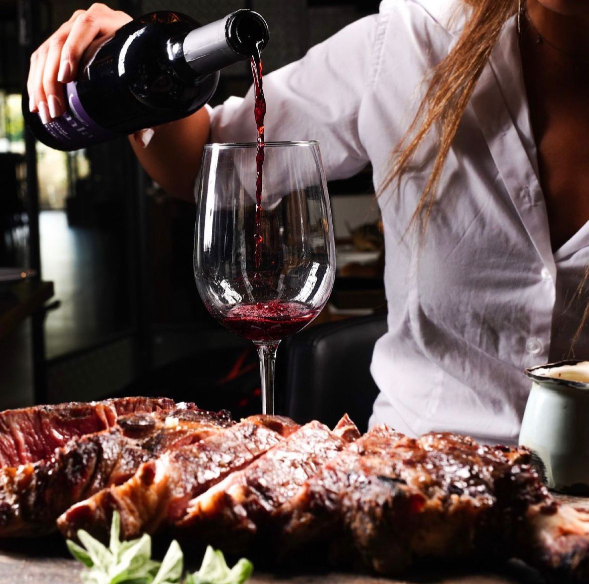 במנות עיקריות – מעורב ירושלמי (90₪) המבורגר אנטריקוט (85₪), טחול הבית (89₪). בנתחי הפרימיום: אנטריקוט על העצם (100 גרם) ב-55₪; סטייק טומהוק (100 גרם) ב-65₪, סטייק אנטריקוט אז’ול (300 גרם) מנתח קצבים מרכזי) ב-238₪; וצלעות טלה מקוצב (300 גרם) ב-218₪. הנתחים מוגשים עם קונפי שום, צ’ימיצ’ורי ורוטב יין אדום, ובליווי כוס יין הבית.