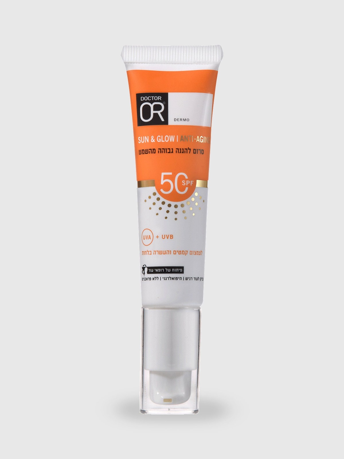 SUN&GLOW ANTI AGING של דוקטור עור: סרום הגנה SPF50 רב-תכליתי, המגן על העור מפני נזקי השמש, מבהיר כתמי עור, מחליק קמטוטים ומעניק לחות. מוצר חובה לקיץ!