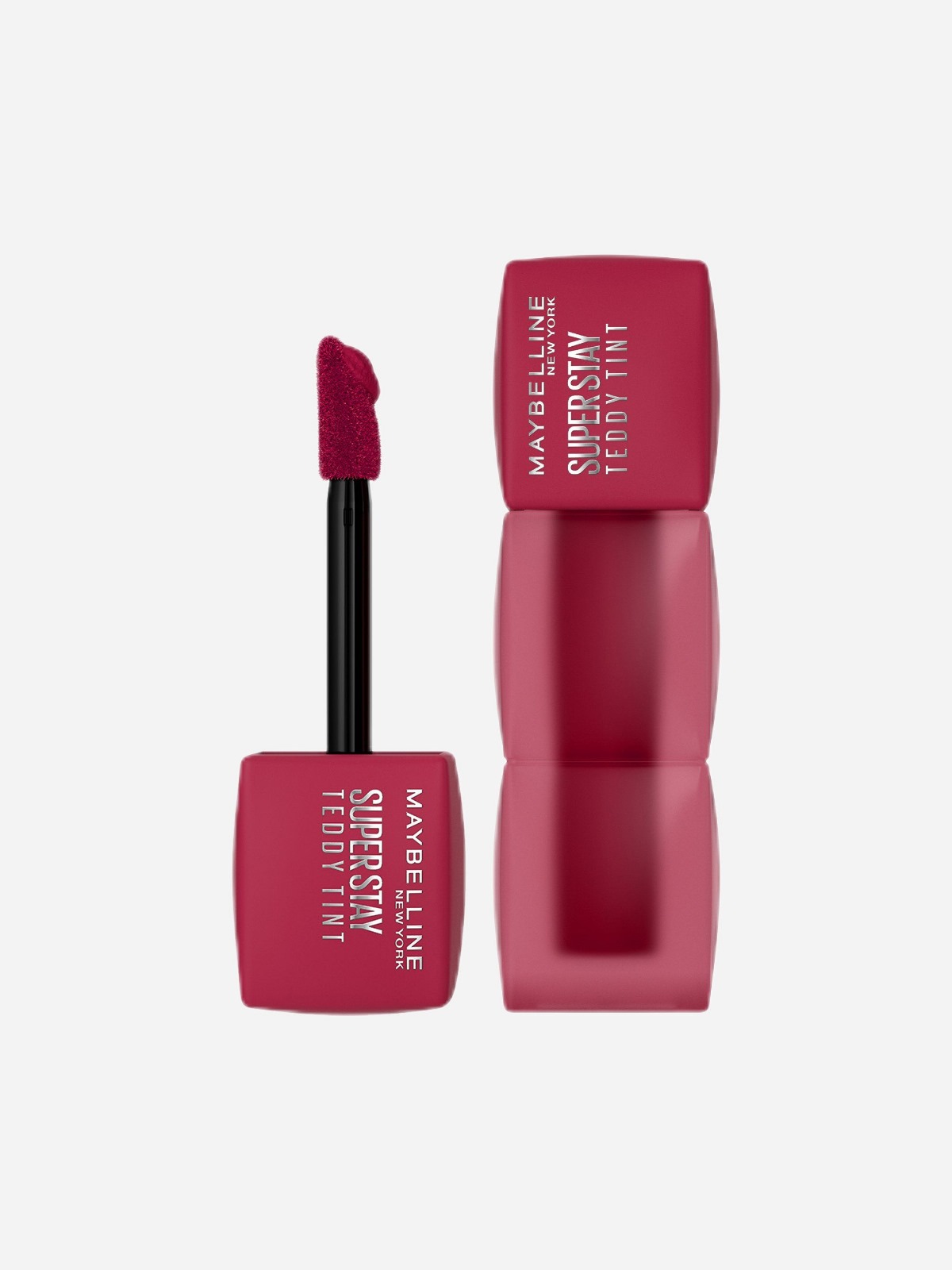 SUPER STAY TEDDY TINT של מייבלין ניו יורק: שפתון נוזלי וסומק טינט במוצר אחד. הפורמולה הקלילה במיוחד עמידה עד 12 שעות ומעניקה גימור מאט טבעי.