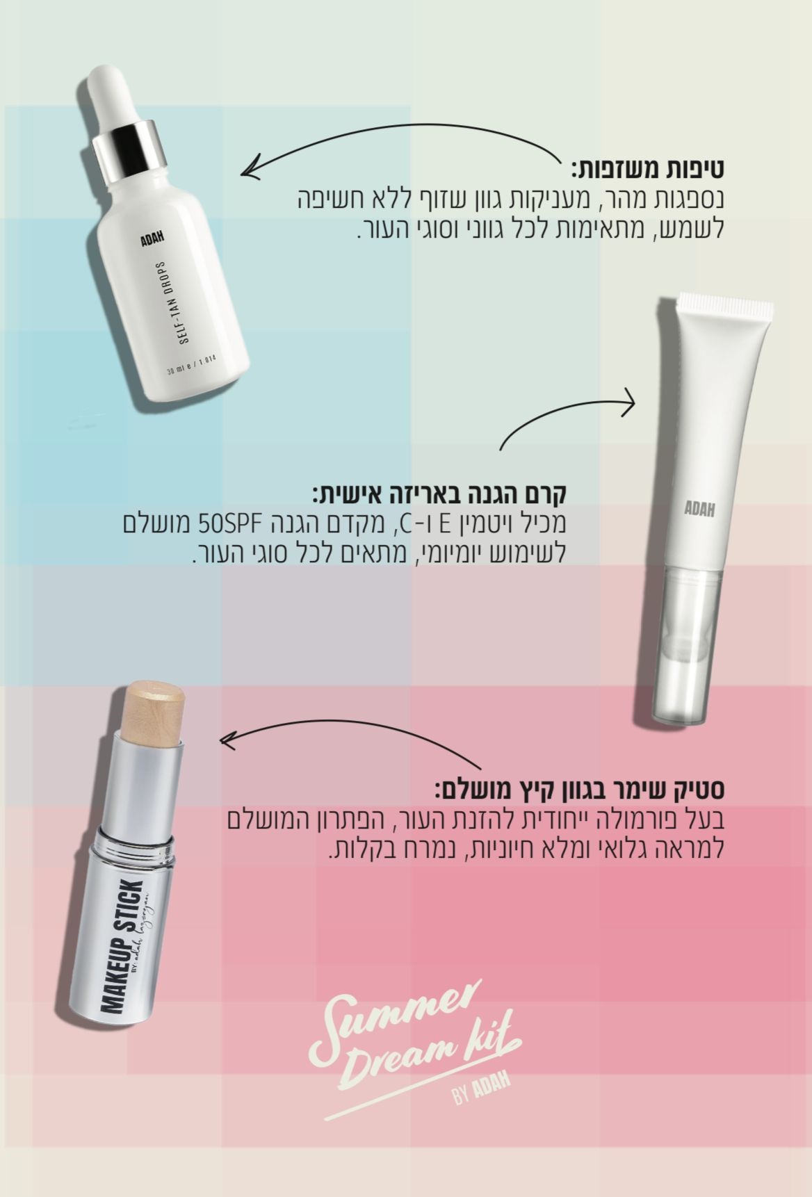 מותג האיפור והטיפוח עדה לזורגן משיק את קולקציית הקיץ החדשה SUMMER DREAM. קולקציית הקיץ מציעה מוצרים שכל אחת חייבת להחזיק! סרום טיפות משזפות, קרם הגנה 50 SPF באריזת תיק וסטיק שימר בגוון אוניברסלי, המעניקים את ההארה המושלמת.
