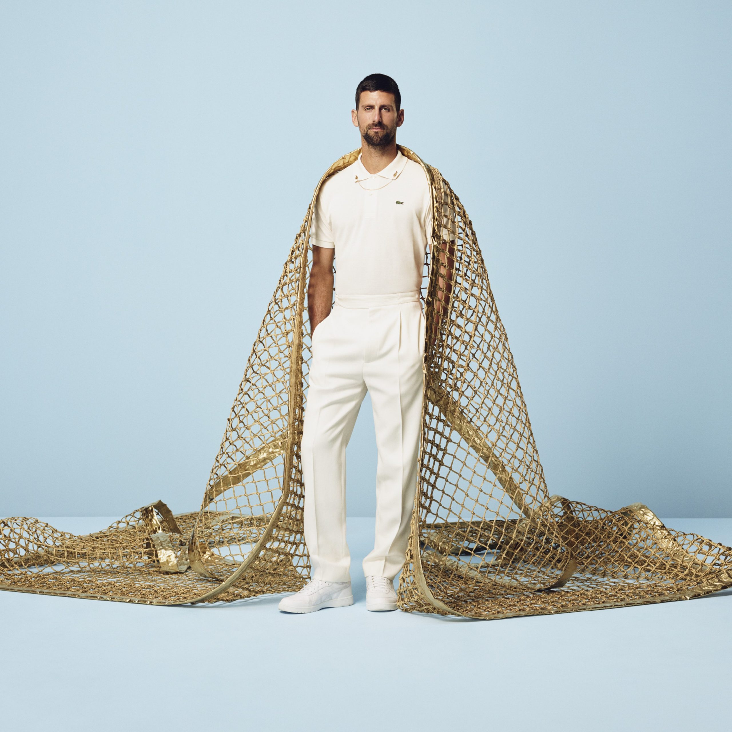 נתחיל עם מלך הטניס, נובאק ג'וקוביץ', שתמונה שלו עטוף ברשת טניס מוזהבת הפכה למעין שכמייה מלכותית. ג'וקוביץ', לבוש בפולו אוף-ווייט קלאסית של לקוסט, נראה כמו מלך אמיתי, והתמונה הזו היא מחווה למעמד שלו כטניסאי הטוב בכל הזמנים, וגם לפולו האייקונית שתמיד תהיה חלק בלתי נפרד מעולם הספורט והאופנה.