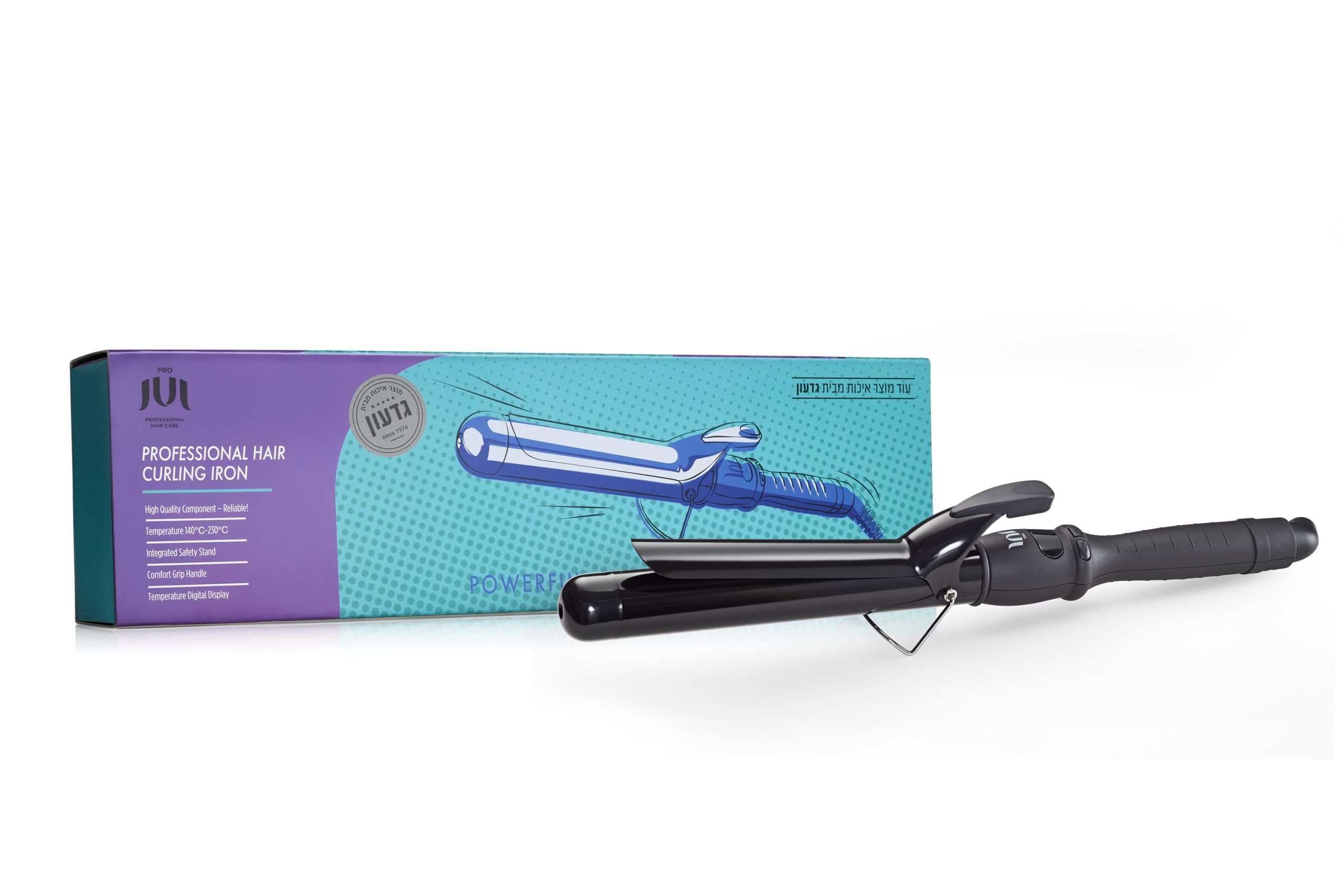 מסלסל שיער מקצועי – מגיע בקטרים שונים (19, 22, 28 מ"מ), עם גליל קרמי מבריק, מערכת חיווי חום ותצוגת טמפרטורה דיגיטלית, כבל מסתובב 360°, ידית אחיזה נוחה ומעמד בטיחות מובנה.