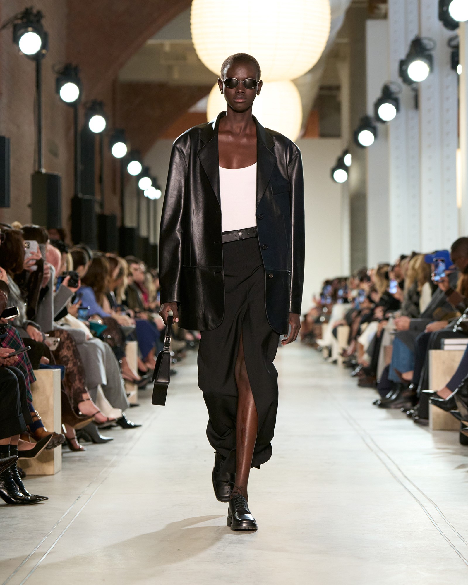 פלטת הצבעים שילבה גווני שוקולד, קרמל וחציל לצד אפורים אורבניים ועל-זמניים בשחור ולבן. בגזרת הנעליים, המגפיים כיכבו – ממגפוני קרסול ועד מגפי רכיבה עם עקבים ארכיטקטוניים. תיקים בהשראת מסעות בעולם, ביניהם תיקי באולינג, תיקי צד וקלאצ'ים גדולים, השלימו את הקולקציה.