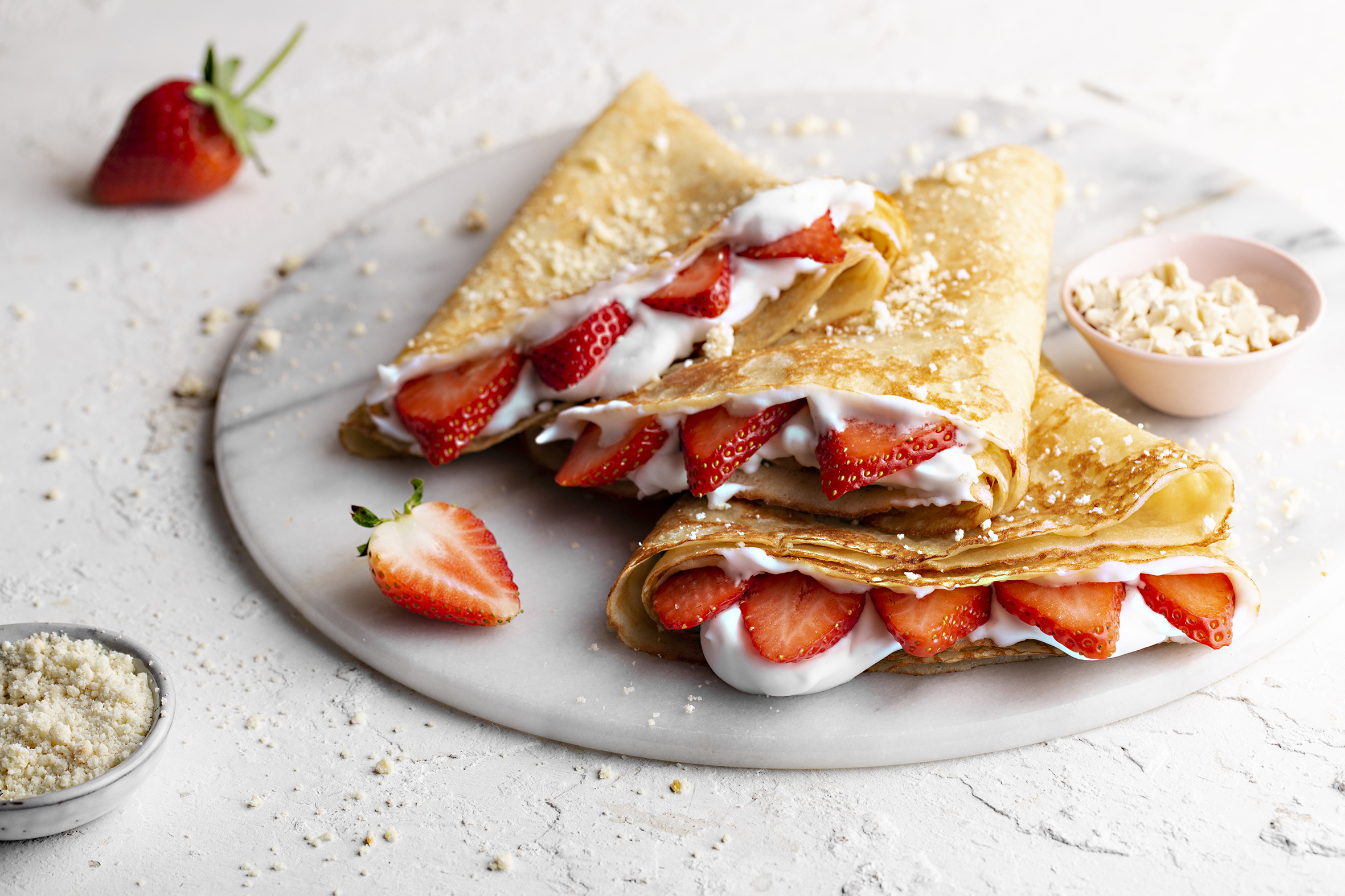 קרפ גבינה עם תותים – 72 ש"ח