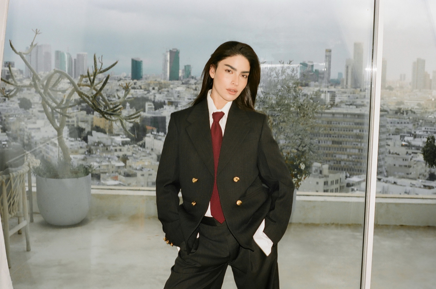 אחד הטרנדים הבולטים בקולקציה הוא ה-"NEW SUITING", המציג את החליפות כפריט חובה במלתחה הנשית. החליפות משלבות בין הנשיות המודרנית למראה הגברי הקלאסי, ומשקפות שיח תרבותי רחב יותר על כוחה של החליפה והמשחק בין תפקידי גברים ונשים. אביסרור מופיעה בלוק עוצמתי של בלייזר שחור של BOTTEGA VENETA, מכנסיים מחויטים של ISABEL MARANT ועניבה אדומה, הממחיש את השילוב בין עוצמה לנשיות. לוק נוסף כולל חליפת נייבי של VALENTINO עם כפתורים מוזהבים, המציגה שילוב של אלגנטיות, רכות וזוהר.