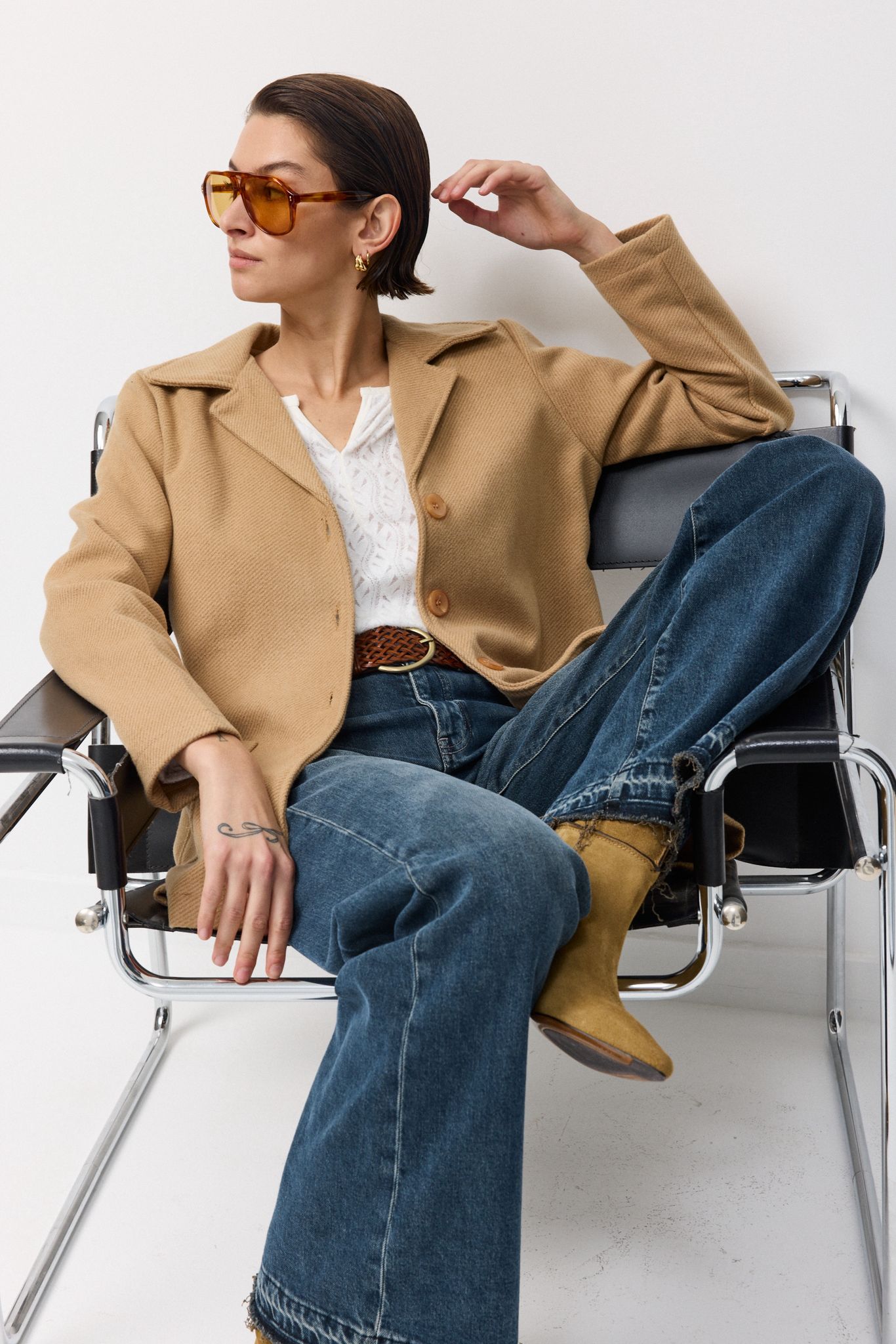 מצד אחד, ז’קטי ג’ינס קלאסיים, מכנסיים ישרים וגזרות עבודה נקיות – לפעמים עם פרופורציות מעט מוגדלות וכתפיים מודגשות, כמחווה שנות־שבעים–שמונים.