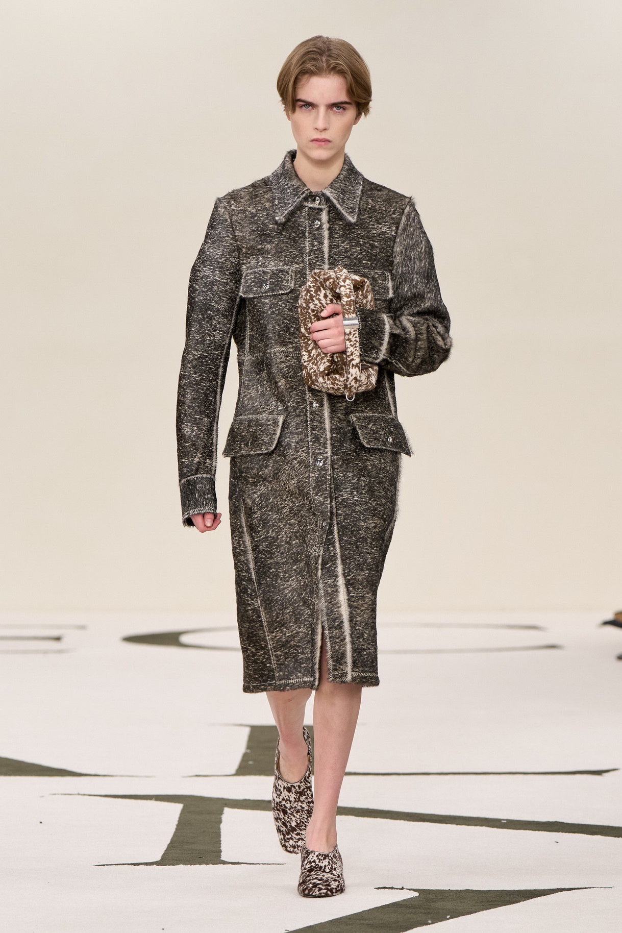 הקולקציה נפתחה עם חייטות חדות כתער המזכירות את שנות ה-90, וכללה ז'קטים ללא צווארון אפור יונה, חצאיות עיפרון פריכות, מעילי טרנץ' מובנים וג'ינס נינוח אך מדויק. פלטת הצבעים המצומצמת של שחור, לבן, שמנת ואפור היוותה ניגוד מוחלט לאסתטיקה העמוסה של האופנה העכשווית, והדגישה את המסר: פחות זה יותר.