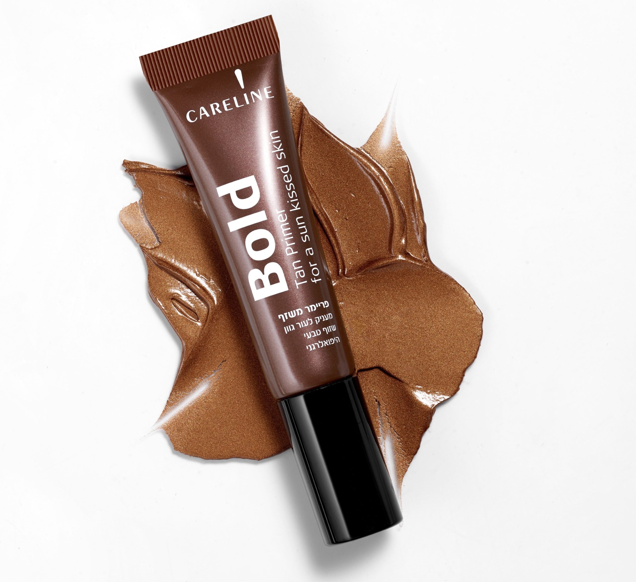 הבא בתור, הפריימר השזוף לעור נשוק שמש נועז. פריימר משיי זה מלא בפיגמנטים זוהרים המעניקים לעור מראה שזוף ואחיד. הוא מכיל נוסחה על בסיס מים עם ויטמין B, סקוולן וחומצה היאלורונית לשמירה על לחות ורעננות העור. בנוסף, הוא מכיל ביסבולול ואלנטואין להרגעת העור. פשוט מרחי אותו אחרי הקרם לחות, וזהו. את יכולה אפילו לערבב מעט עם הקונסילר, המייק-אפ או הסומק שלך לזוהר נוסף ועמידות משופרת.