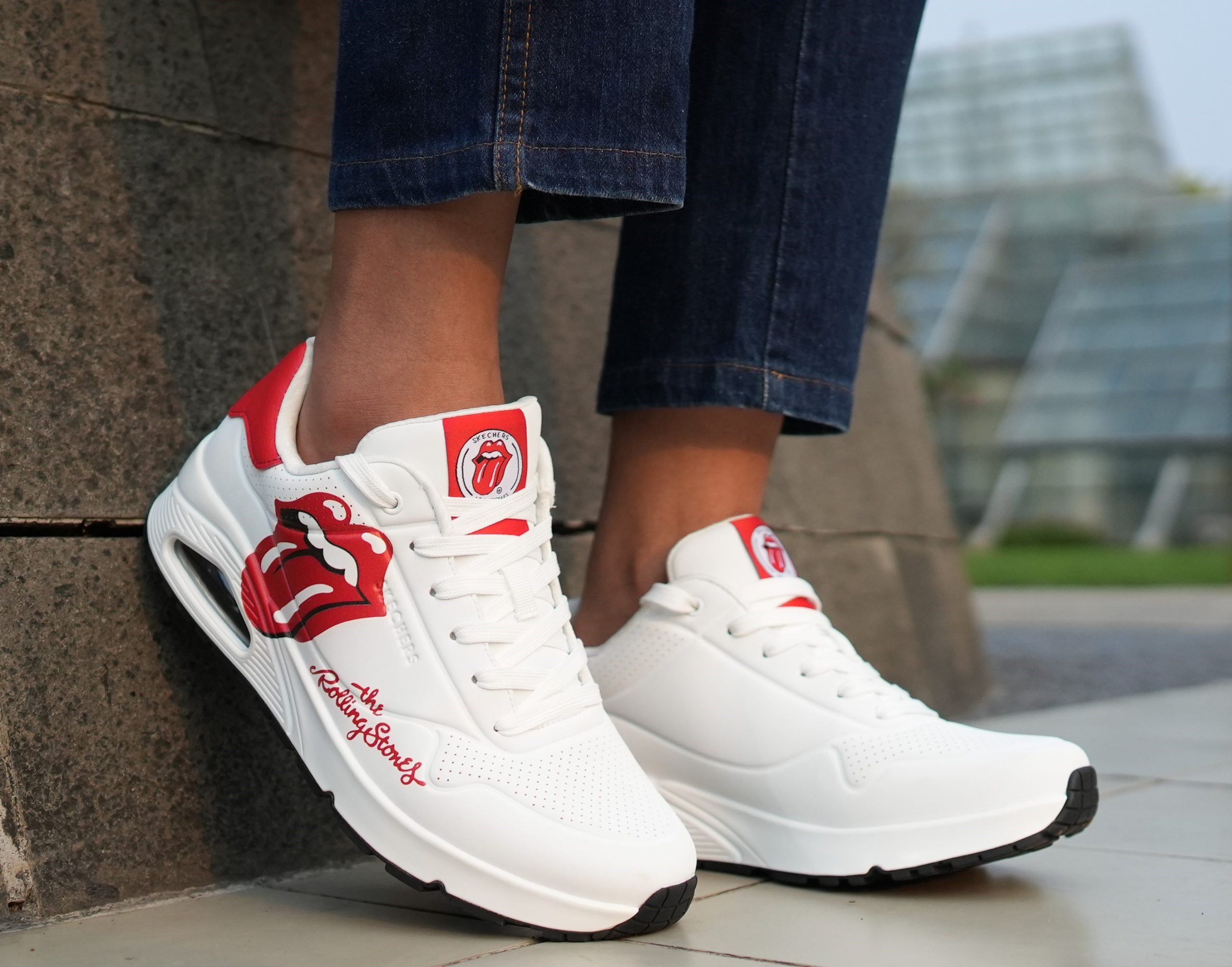 נעלי הרולינג סטונס הם מדגם אונו – בסט סלר עולמי של סקצ'רס, המשלב סוליה עם כרית אוויר גלויה שמספקת גובה, תמיכה ויציבות לכף הרגל, ורפידת ממורי פואם הזוכרת את תצורת כף הרגל ושומרת על אוורור. הטוויסט: על גבי הנעליים יופיע לוגו הלשון האדומה והמוכרת של להקת הרולינג סטונס.