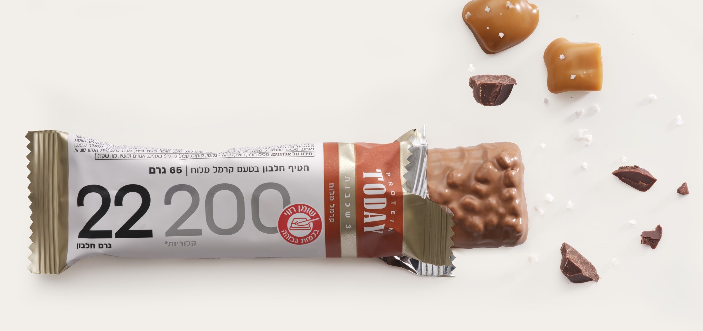שוק חטיפי החלבון בישראל מוערך בכ-100 מש"ח וצומח בממוצע של 60% בשנה. עיקר המכירות של קטגורייה זו ברשתות הפארם (30%), בחנויות הנוחות (25%). הפורמט העיקרי של חטיפי החלבון הוא שכבות המצופות בקרם שוקולד, הטעמים המובילים על המדף הם קרם עוגיות, בוטנים, שוקולד וקרמל.