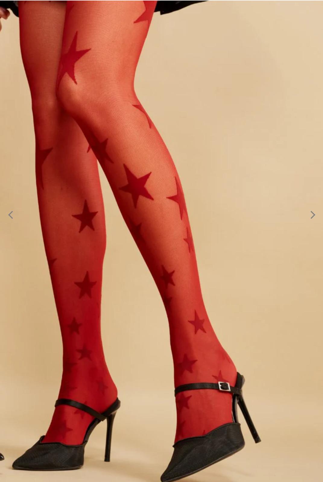 גרביון גלקסיה –  גרביון נשים אדום שקוף עם כוכבים צפיפות : 20 דניר
