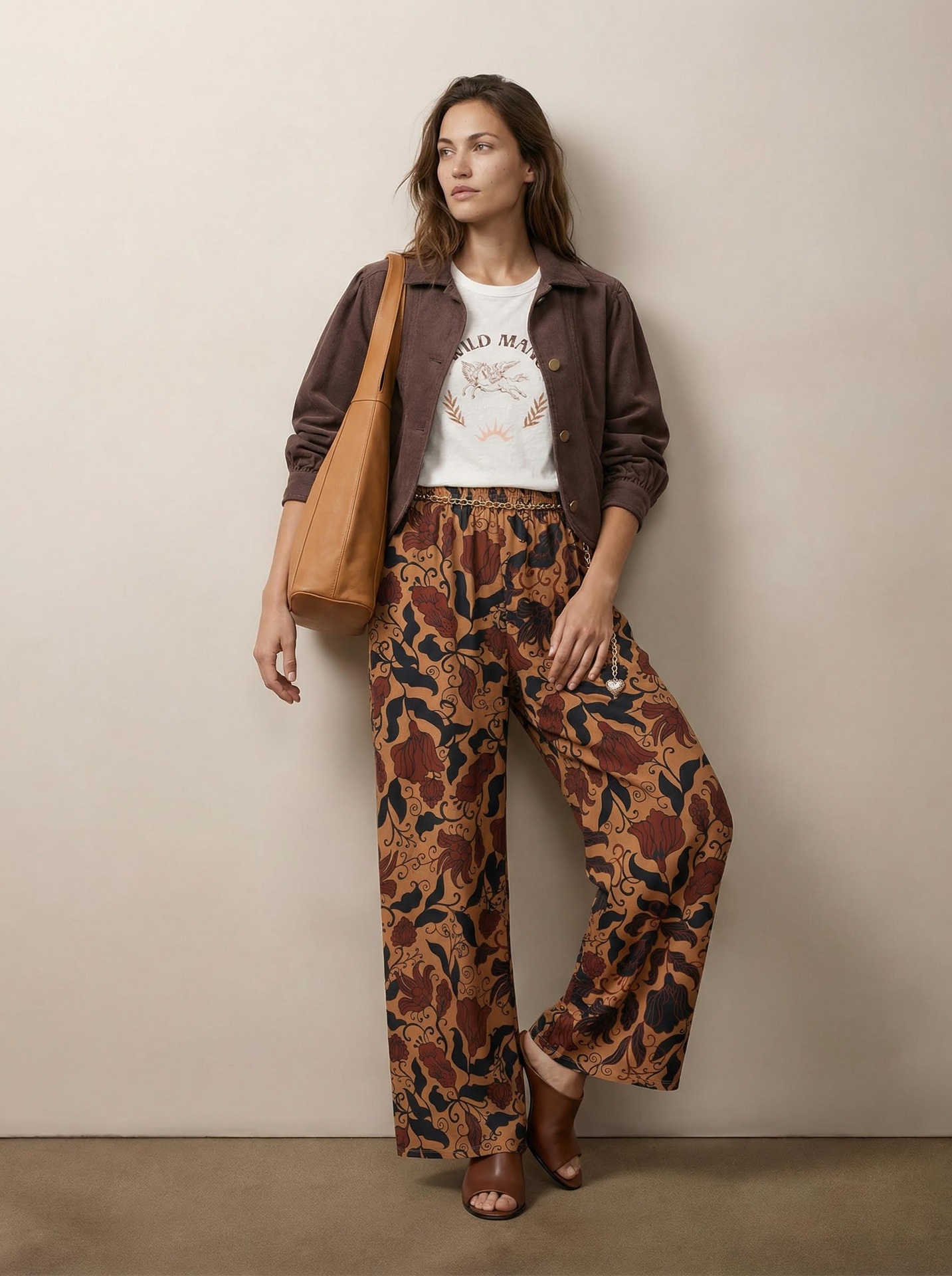 בוהו־פריזאי במוד “אביב ראשון”: טבע מתעורר, אור רך ומרחבים פתוחים שנכנסים לתוך העיר. הפלטה חמה וטבעית, עם מנדלות ועיטורים גרפיים, צלליות ארוכות וזורמות ובדים שמוסיפים תנועה. זו מלתחה שעובדת בשכבות: שמלות קלילות, עליוניות וז’קטים משוחררים, עם טוויסט של וסט רקום בחרוזים ואקססוריז חדשים לעונה.