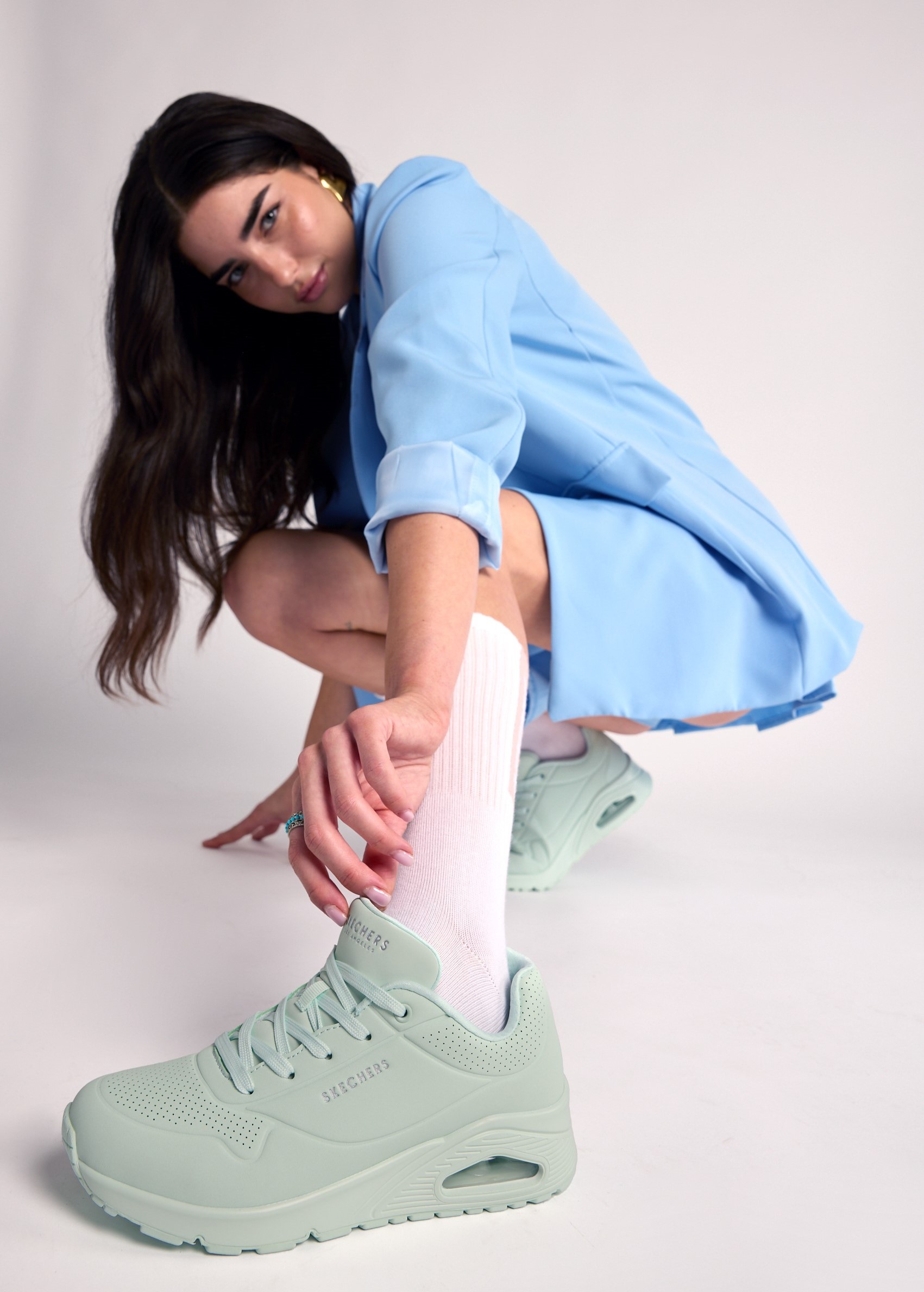 קולקציית UNO הופכת להיות פופולרית ביותר ומביאה איתה את האופנה והנוחות לרמה חדשה. נעלי UNO מציעות סולידיות עם טכנולוגיית Skech-Air שמספקת תמיכה ויציבות, ורפידת Air-Cooled Memory Foam® המתאימה את עצמה לכף הרגל ושומרת על אוורור. סדרת UNO בצבעי פסטל מגיעה במגוון צבעים טרנדיים שיכולים לשדרג כל לוק ולהתאים לכל אירוע – ורוד בייבי, סגול לילק, מנטה וצהבהב.